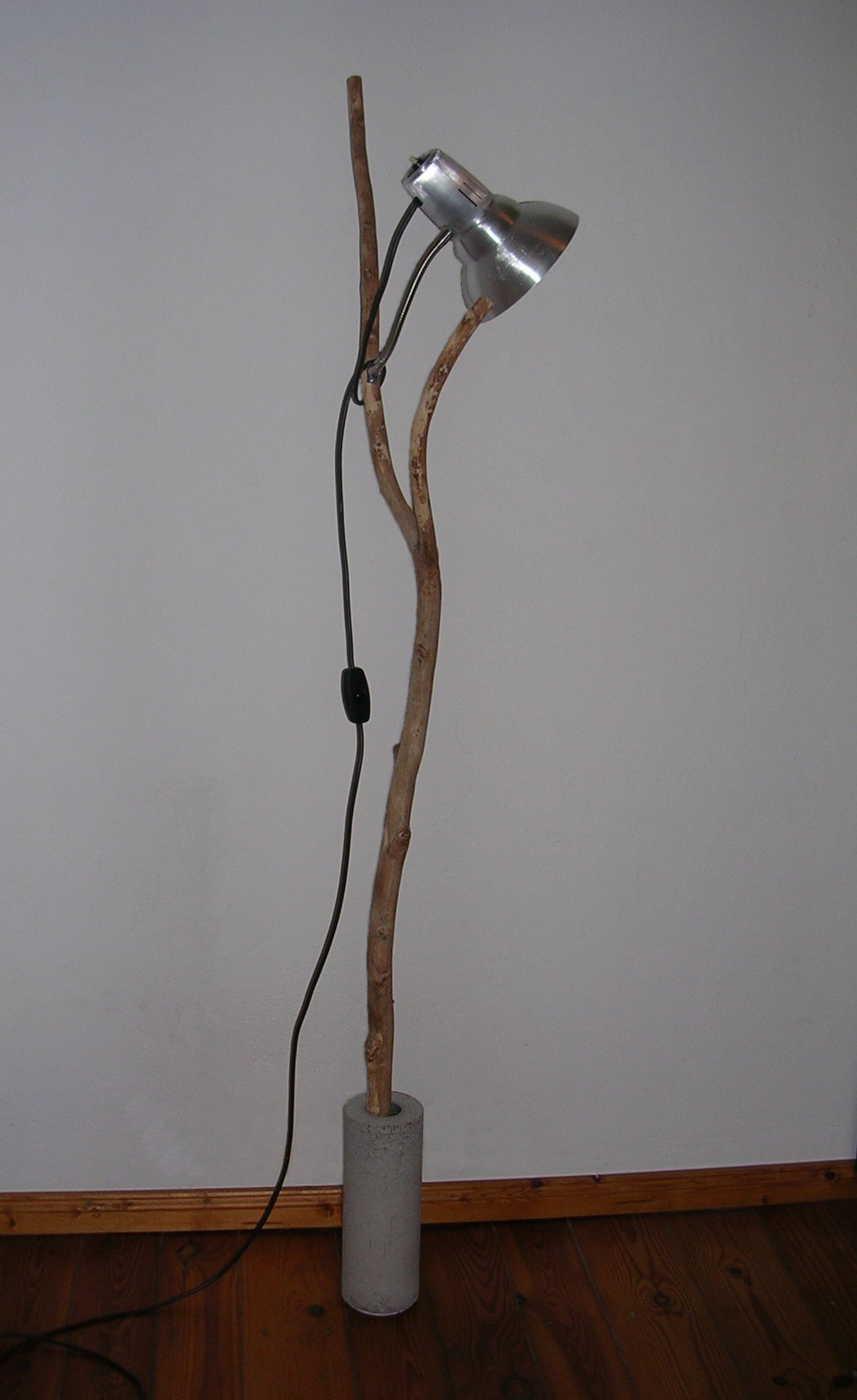 ALTER AST, BETON, FILZ (ZUM SCHUTZ DES BODENS), ALTER BÜROLAMPENSCHIRM, STANDARD-ELEKTROMATERIAL.