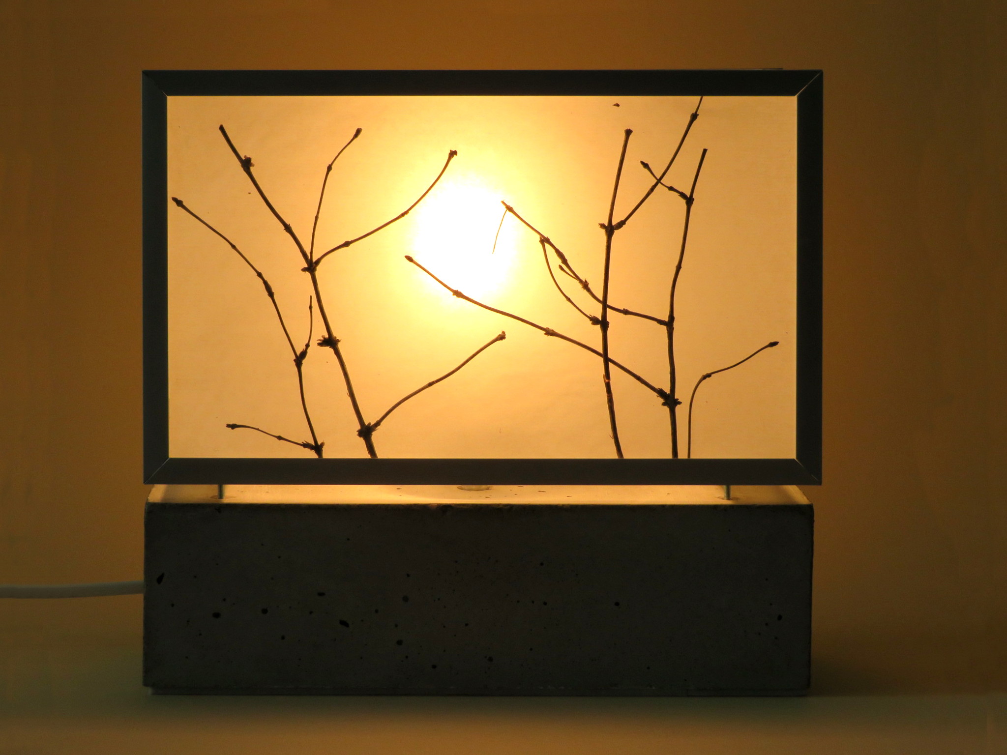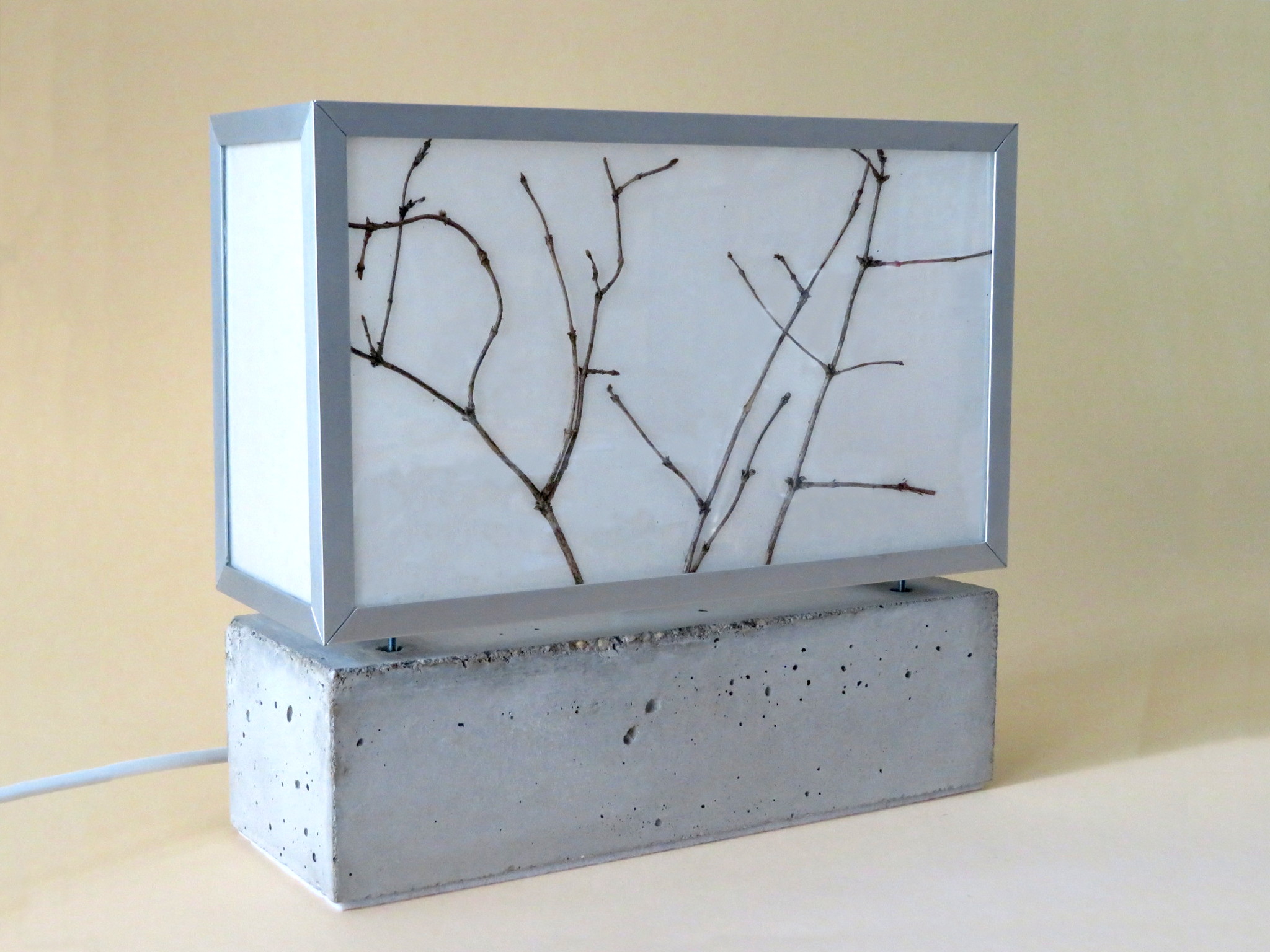 BETON, ALUMINIUM-PROFILE, ACRYLGLAS, TRANSPARENTPAPIER, NATURMATERIALIEN (ZWEIGE, SAMENSTÄNDE), STANDARD-ELEKTRIKSATZ. -